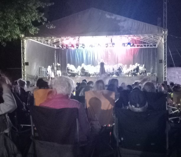 The first half included a medley of brass band music celebrating all things British.. Before the interval, the crowd heard a rendering of Queen’s songs, plus the themes of the James Bond movies. There was much audience participation and flag waving in the second half with the traditional Rule Britannia and Jerusalem.